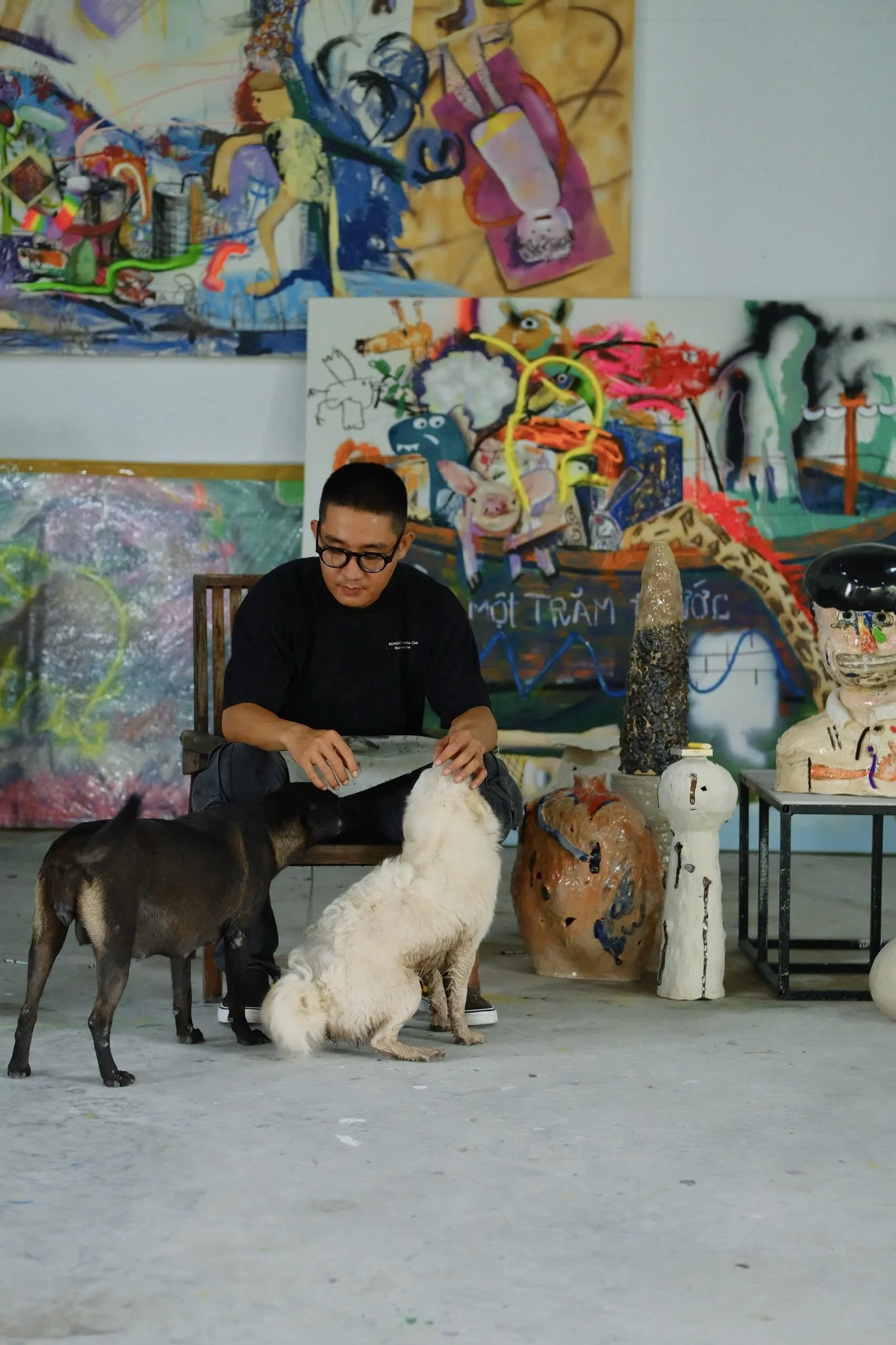 Hoang Thien Phuc (b. 1994, Binh Thuan), is a vibrant and free-spirited artist from La Gi — a coastal village in Binh Thuan province. He graduated from the Ho Chi Minh University of Fine Arts in 2020, then ventured into the bustling art scene of Ho Chi Minh City. After a transformative period, he returned to La Gi to embark on a new artistic journey rooted in his origins.