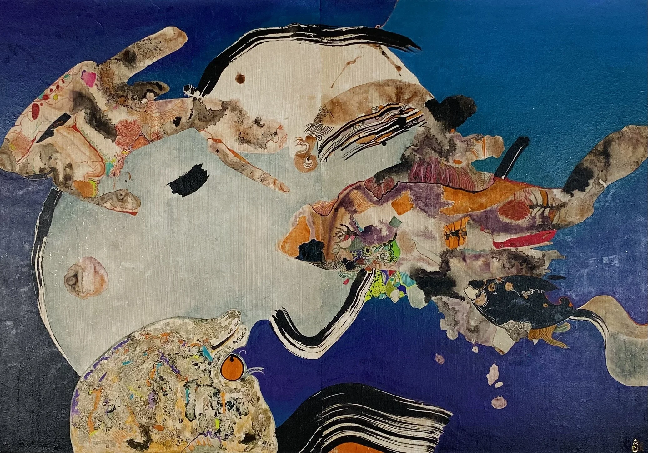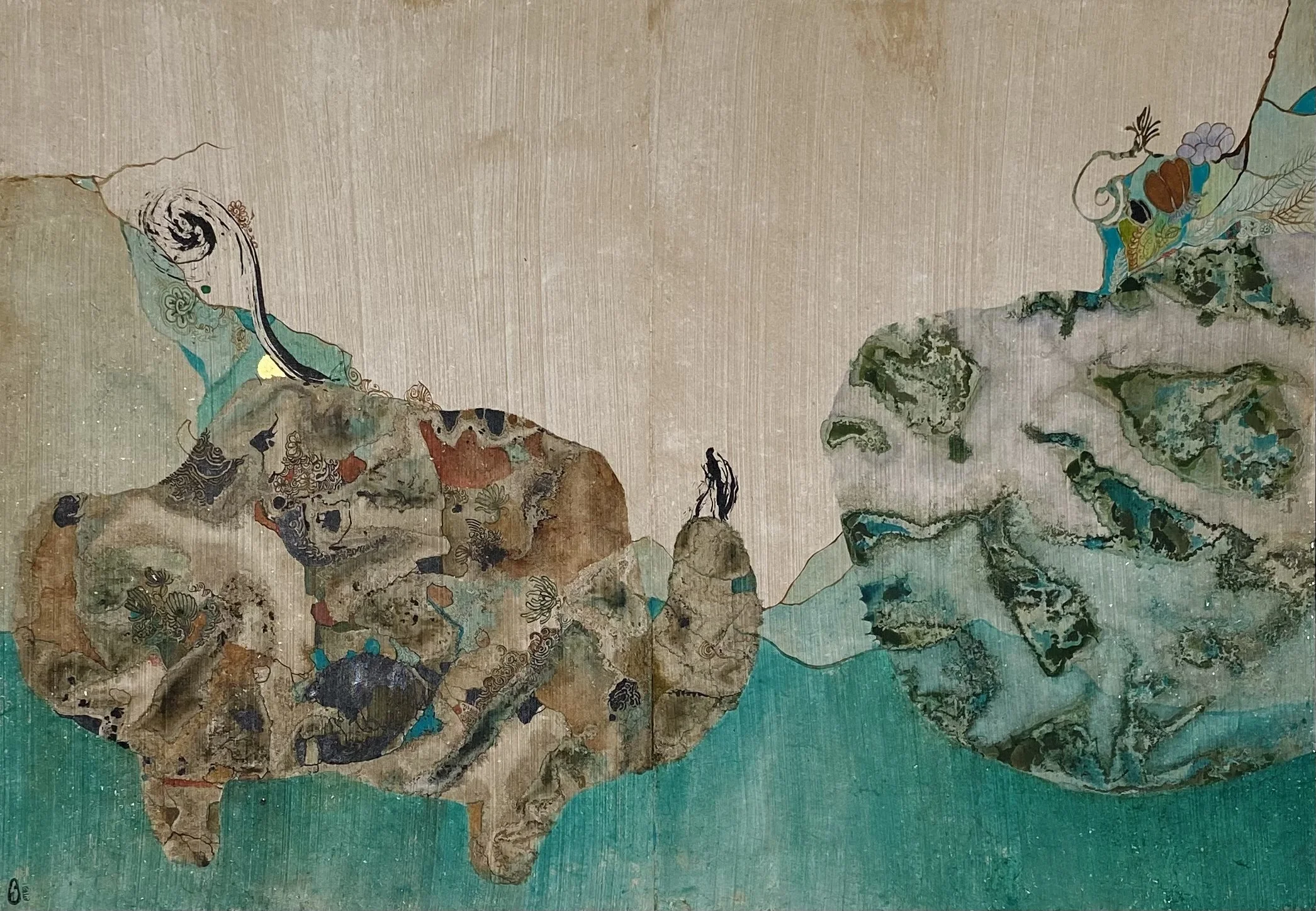 Since 2015, she has focused on researching and experimenting with acrylic paint on traditional Vietnamese Diep paper (scallop paper), and made her artistic debut in 2022 with the first solo exhibition, Diep, at Mo Art Space (Hanoi). Mifa’s artistic practice delves into the harmony and conflict of Eastern nature in the era of globalization, along with the desire to preserve and develop the folk spirit expressed through painting. She is interested in fully exploiting the effect of acrylic paint on the surface of Diep paper through the creation of personal painting techniques inspired by the surface of Vietnamese lacquer paintings combined with painting techniques of ancient Eastern civilizations such as gold-plating techniques on paper, calligraphy, watercolor, hand-printing, paper-mounting...