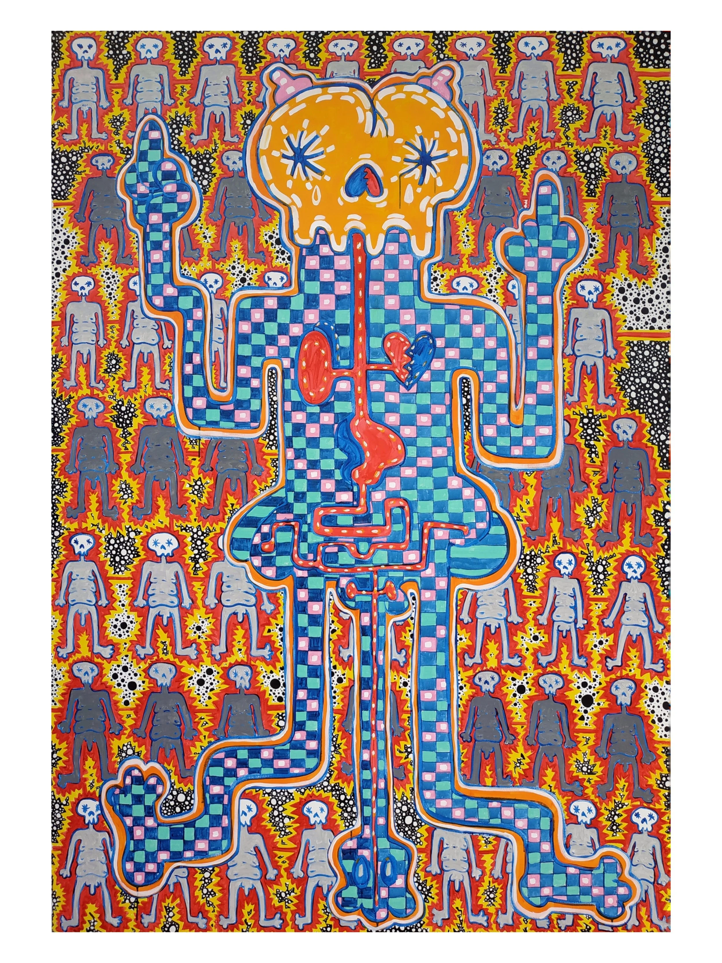 Originally a satirical cartoonist, Tèo Phạm can play with any subject in a lighthearted way. In his practice, he deliberately does not interfere much in terms of content and techniques, while calling his creative process a spiritual excrement - a grand excrement, implying a periodicity in what the mind and the spirit absorb and subsequently generate, the cycle of cause and effect.
